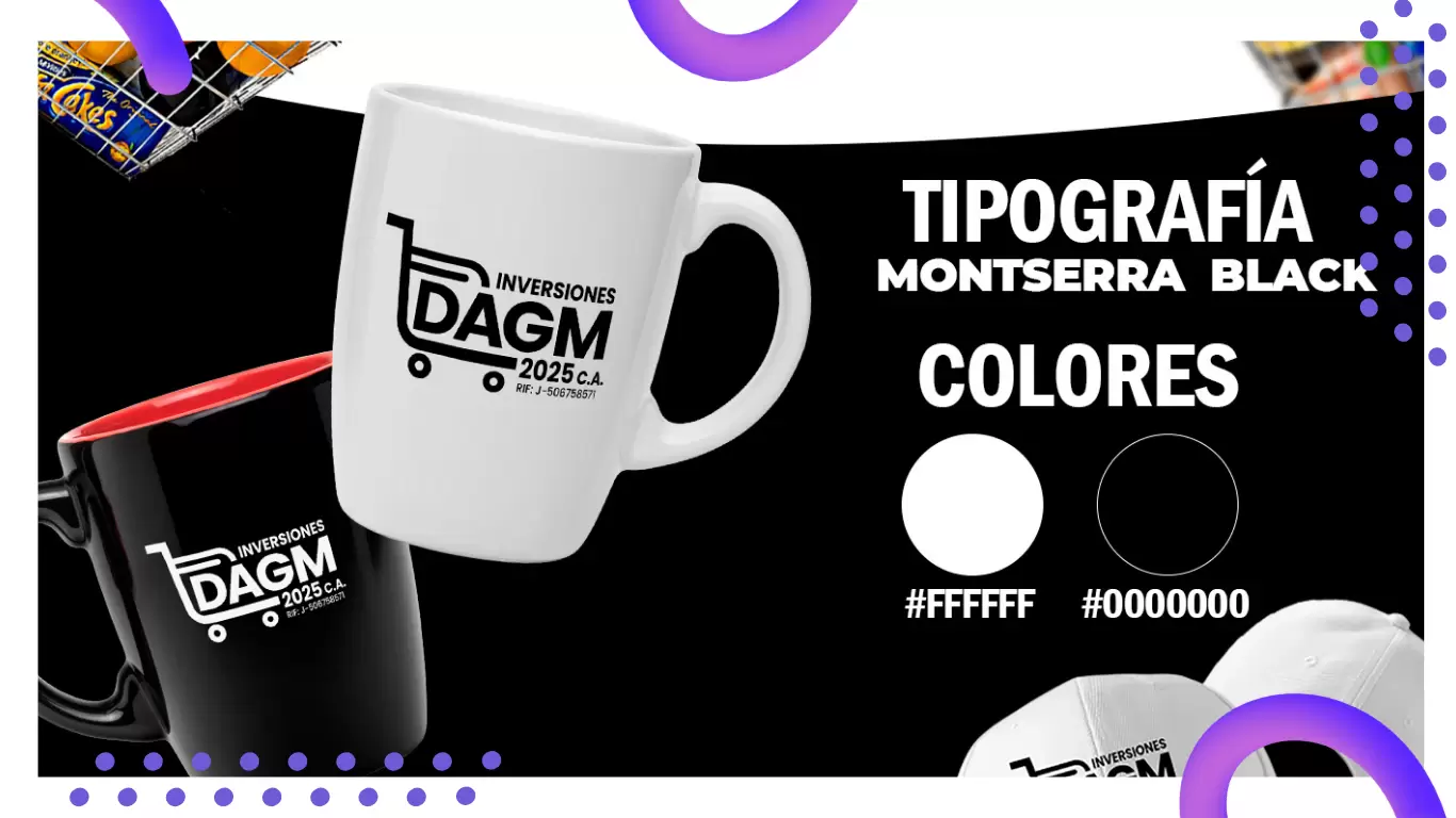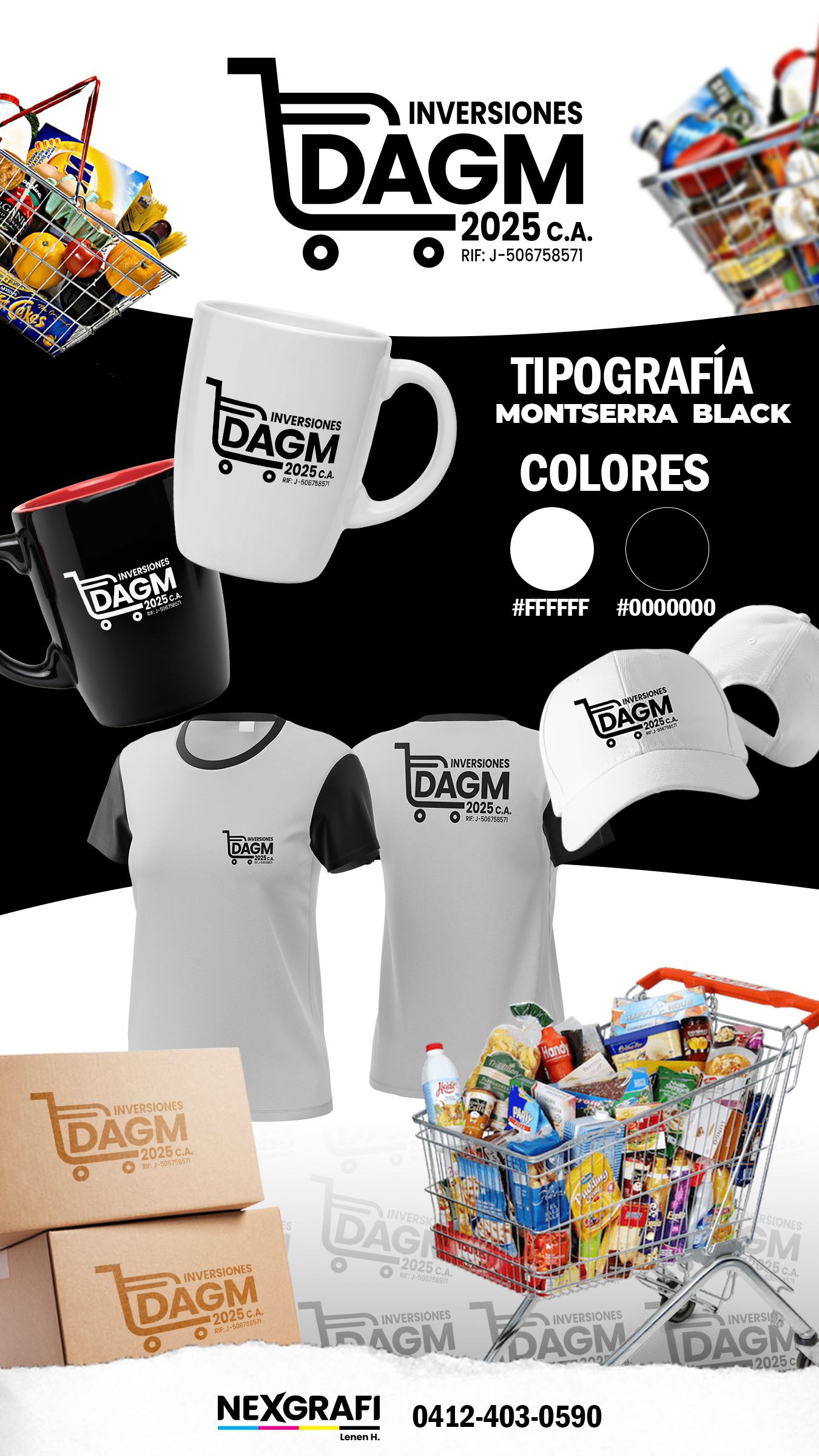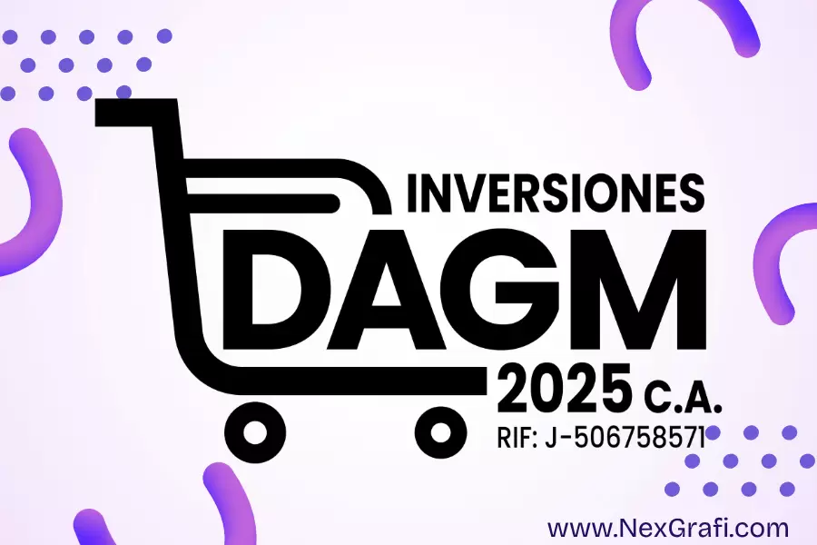 El logotipo busca transmitir una imagen de modernidad, dinamismo y seriedad en el ámbito de las inversiones o el comercio, con un toque accesible y contemporáneo. La combinación del carrito de compras con las letras «DAGM» crea una marca memorable y fácil de asociar con transacciones o negocios.